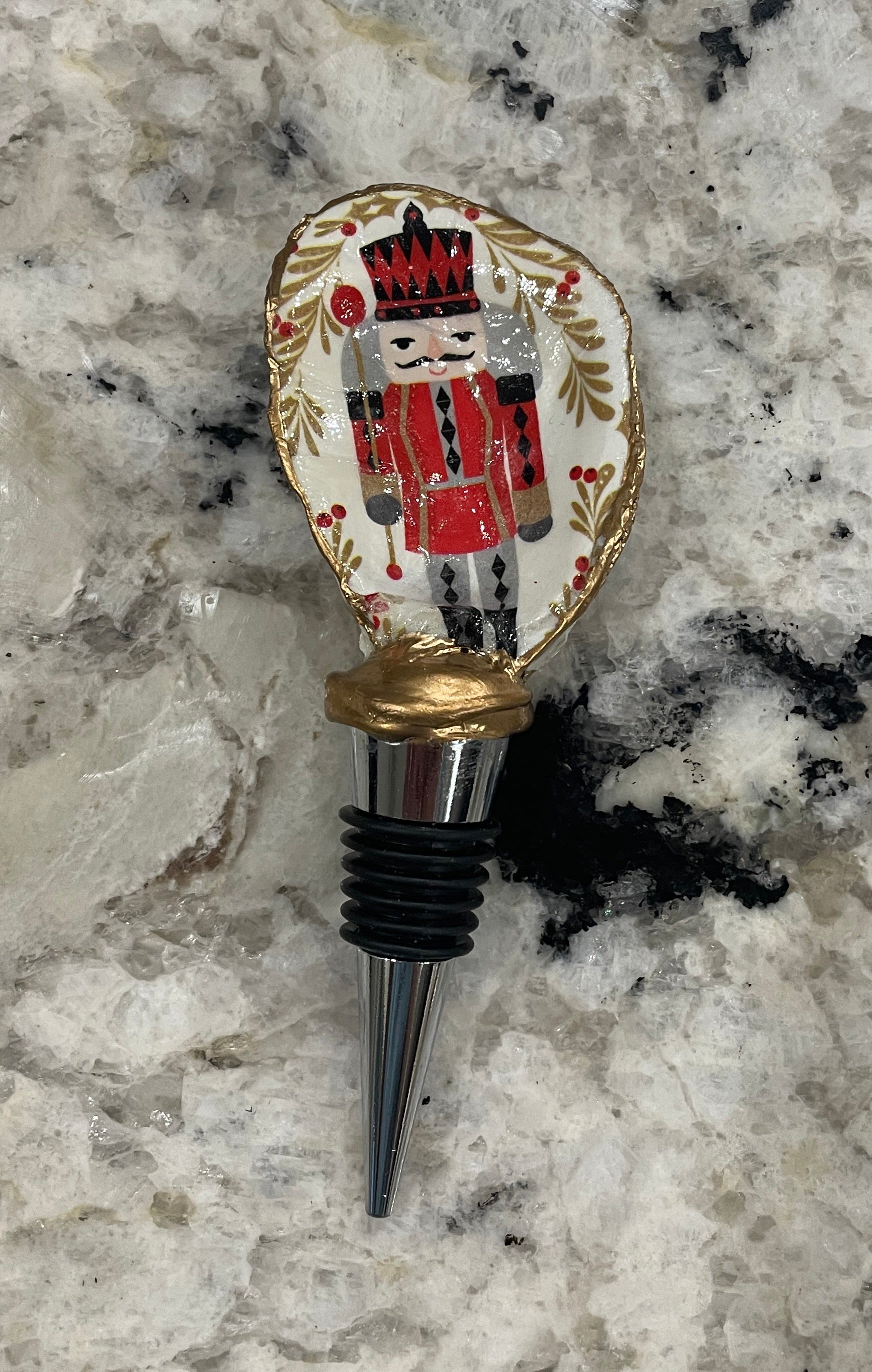 Give the gift of functional art with this handmade, decoupaged Nutcracker Oyster Shell Wine Stopper. Each one is unique, displaying beautiful craftsmanship