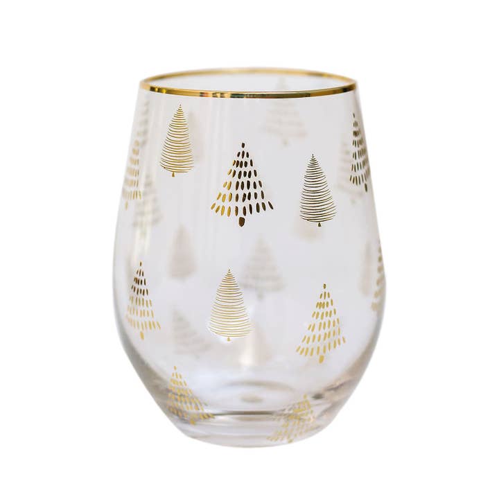 Celebrate the season in style with this elegant Gold Christmas Trees Stemless Wine Glass.